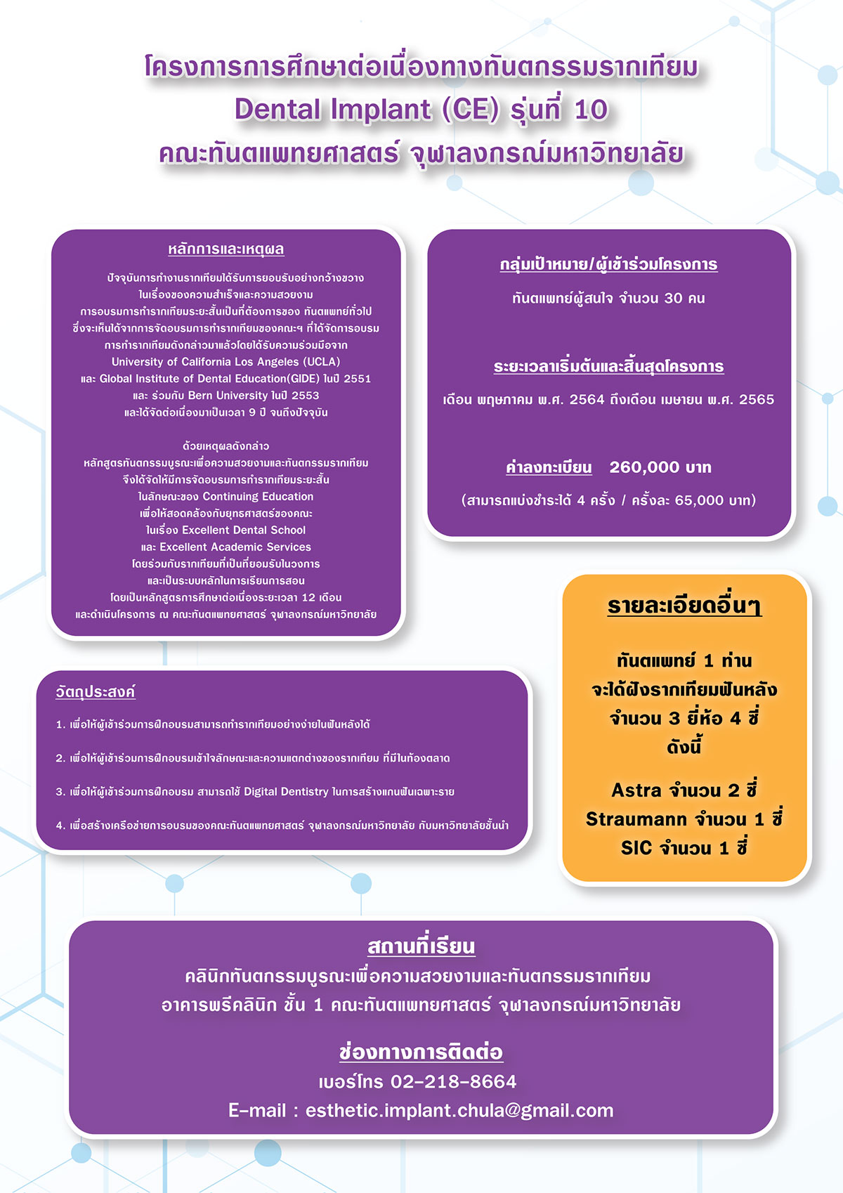 โครงการการศึกษาต่อเนื่องทางทันตกรรมรากเทียม Dental Implant (CE) รุ่นที่ 10